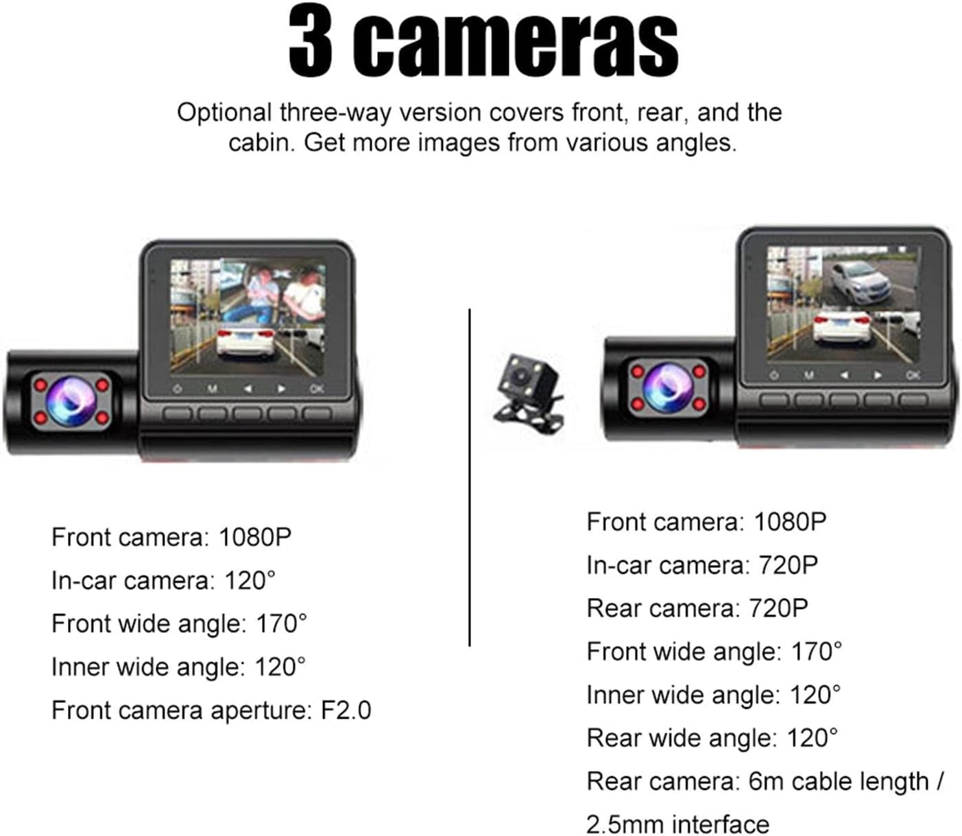 | تعداد لنزها | ۳ لنز (جلو، داخل، عقب) |