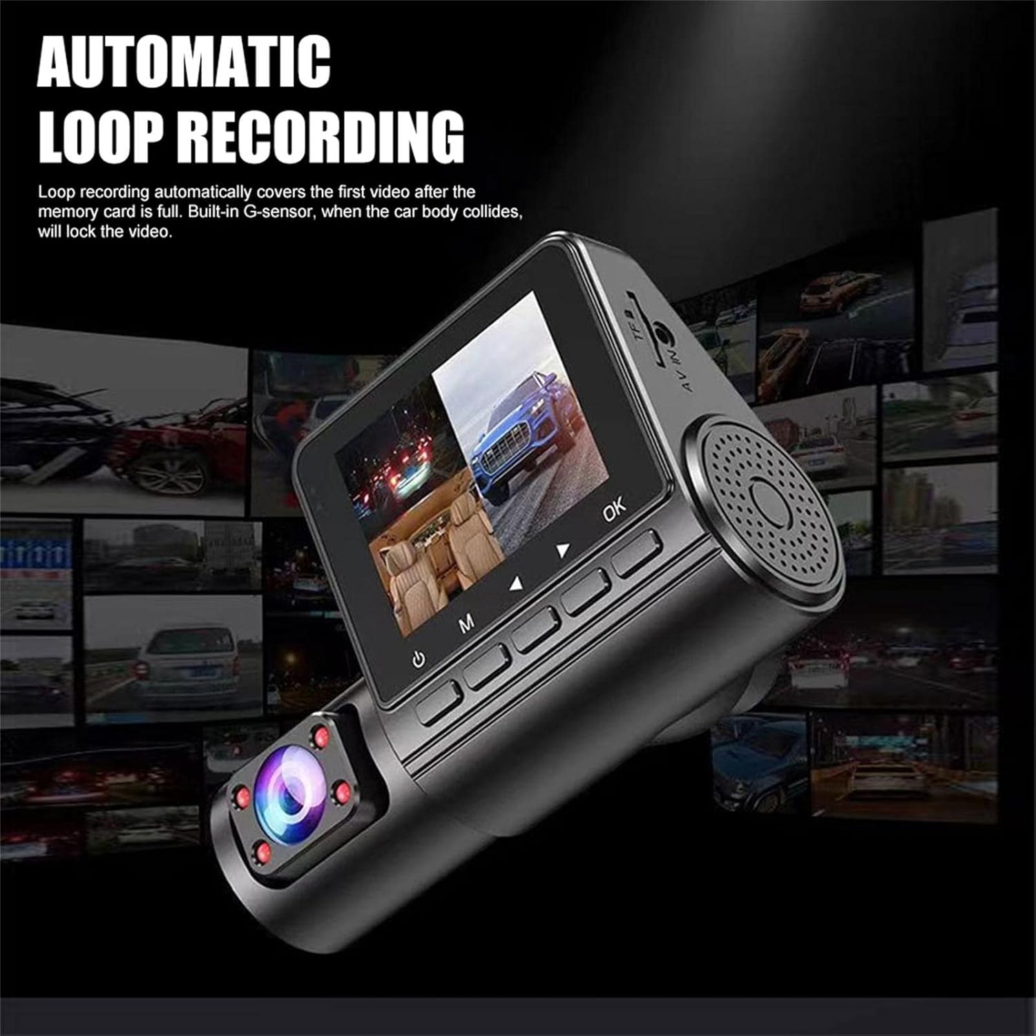 دوربین خودرو سه لنزه Mechesa مدل Dash Cam Front & Rear (360° Rotating Triple Dash Cam)