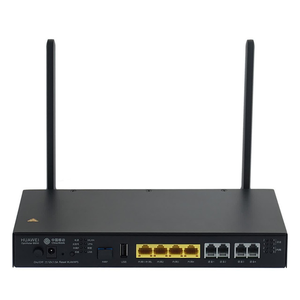 با توجه به گسترش سریع شبکه فیبر نوری کشور و فراهم شدن امکانات ان در شهرک های صنعتی ,شرکتها,کارخانجات بزرگ , تقاضای بسیاری برای مودم های حرفه ای با امکانات خاص ایجاد شده . مودم فیبر نوری هواوی B650 Series دارای چهار پورت شبکه گیگابیتی چهار پورت تلفنی Sip , یک درگاه USB جهت اشتراک گذاری اسان فایلها ,پورت GPON UPC ,دو عدد انتن 5dBi بزرگ ,و عملکرد مطلوب روی دو باند 5-2/4 , تنطیمات و ی پی ان ,بدنه کاملا فلزی بخشی از مشخصه های برجسته مودم حرفه ای هواوی میباشد .